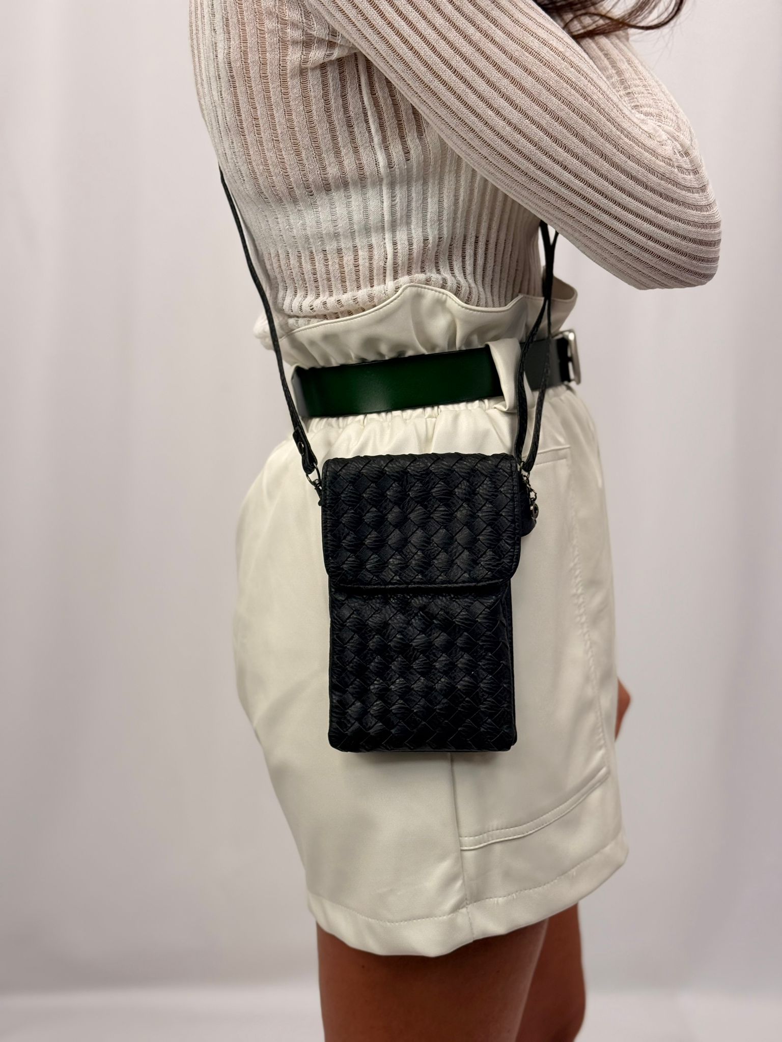 הוא משולב עם רצועה דקה המאפשרת נשיאה על הכתף או בהצלבה, ונראה כמו פריט שמשדר סגנון ואלגנטיות עם פשטות.